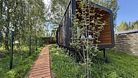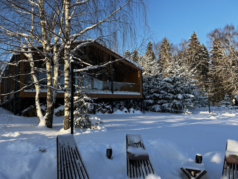 Дизайнерский дом расположен на огороженной территории среди елок. Через лесную тропинку десять минут пешком находится Истринское водохранилище.