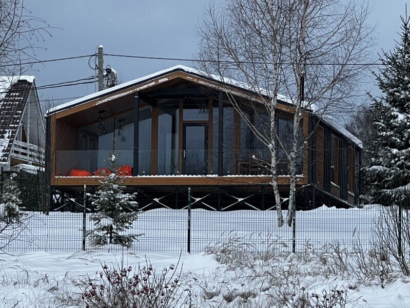 Новый дизайнерский коттедж построен в декабре 2023 года. Новый дом в современном стиле barnhouse на отдельном огороженном участке. Остекление в пол с видом на хвойный и смешанный лес, в доме новая мебель, во всём доме тёплый пол. Дом расположен возле леса, на окраине деревни; до Истринского водохранилища — десять минут пешком по лесной тропинке.