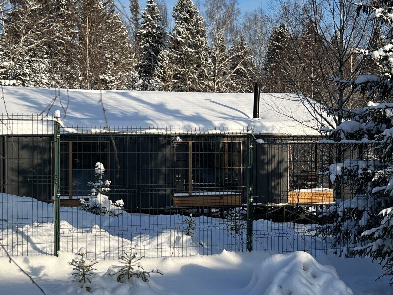 Новый дом в современном стиле barnhouse на отдельном огороженном участке. Остекление в пол с видом на хвойный и смешанный лес, в доме новая мебель, во всём доме тёплый пол. Дом расположен возле леса, на окраине деревни; до Истринского водохранилища — десять минут пешком по лесной тропинке.