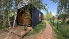 Внутри: гостиная с панорамным видом на лес, печь‑камин. ЖК‑телевизор 55", Яндекс.Станция с оплаченным Кинопоиском. Кухня оборудована индукционной плитой, холодильником с морозильной камерой, посудомоечной машиной, чайником, кофемашиной и всей необходимой посудой. Кондиционеры. Санузел с душем, комплект полотенец для каждого гостя, фен, стиральная машина. Большая веранда со столом, стульями и деревянными шезлонгами. Охранная сигнализация, высокоскоростной интернет (Wi‑Fi).
