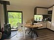 Внутри: гостиная зона с панорамным окном, веранда с мебелью (дизайнерский диван, стол и стулья), кухня оборудована варочной панелью, посудомоечной машиной, холодильником с морозильной камерой, микроволновой печью, чайником, кофемашиной и всей необходимой посудой, санузел с душем, комплект полотенец для каждого гостя, фен, высокоскоростной интернет (Wi-Fi), кондиционеры, камин.