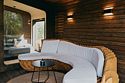 Панорамная баня предлагает гостям коттеджа «Шон» насладиться атмосферой тепла и умиротворения. Здесь горячий пар мягко окутывает тело, снимая усталость и даруя чувство гармонии. Из панорамных окон открывается великолепный вид на природу, позволяя любоваться ее красотой.