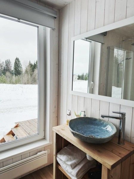 Уютный, полностью оборудованный для комфортного проживания, дом с панорамным видом и камином, террасой и зоной барбекю. На первом этаже расположены: кухня-гостиная с раскладным диваном, камином, телевизором и полностью оборудованной кухней; спальня с двуспальной кроватью; совмещённый санузел с душем. На мансардном этаже располагается спальня с двуспальной кроватью. Дети до 3 лет размещаются бесплатно. Проживание с собакой дополнительно 1500 ₽.