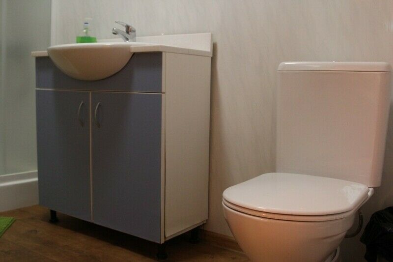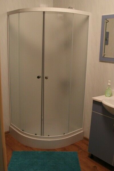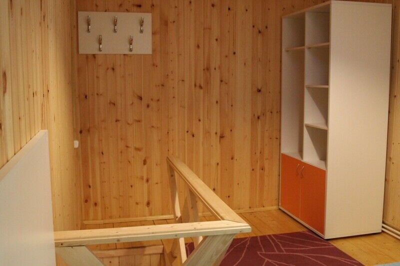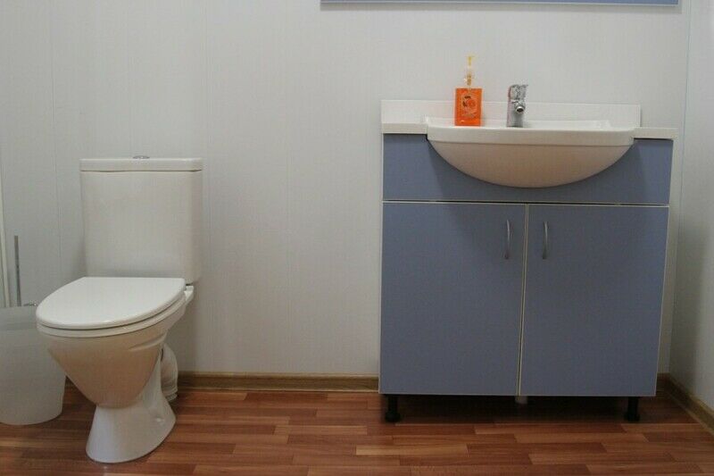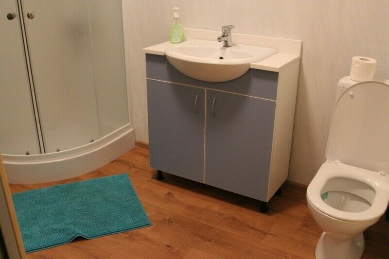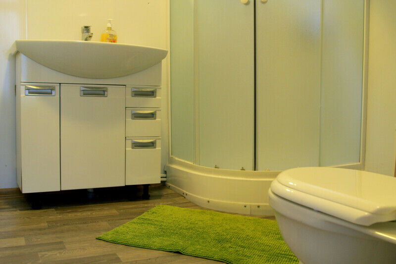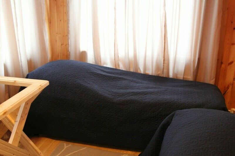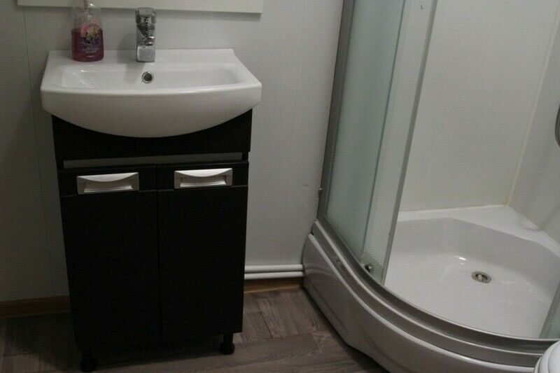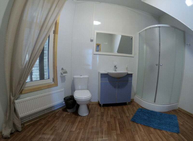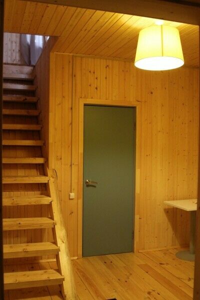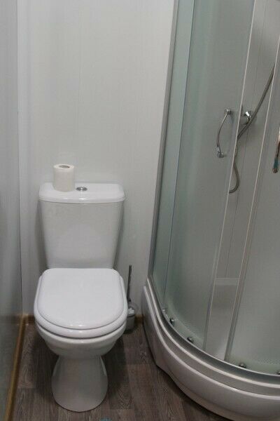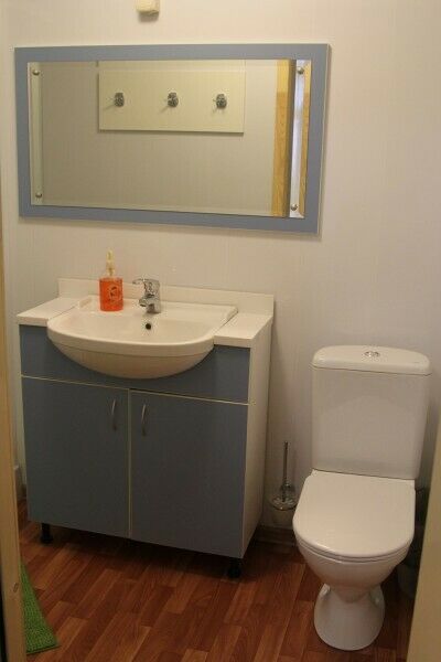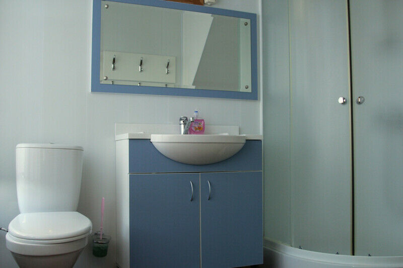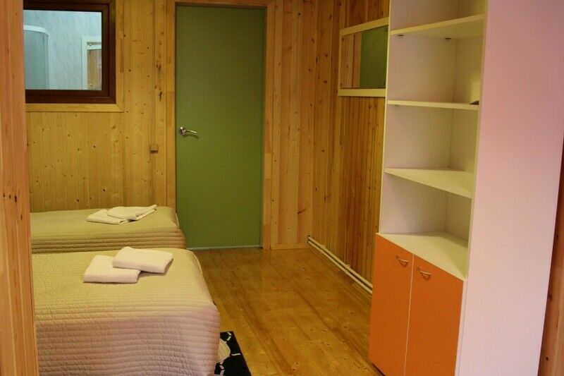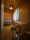 Двухуровневый домик. На первом этаже душ с туалетом, на втором – небольшая спальня и две односпальные кровати.