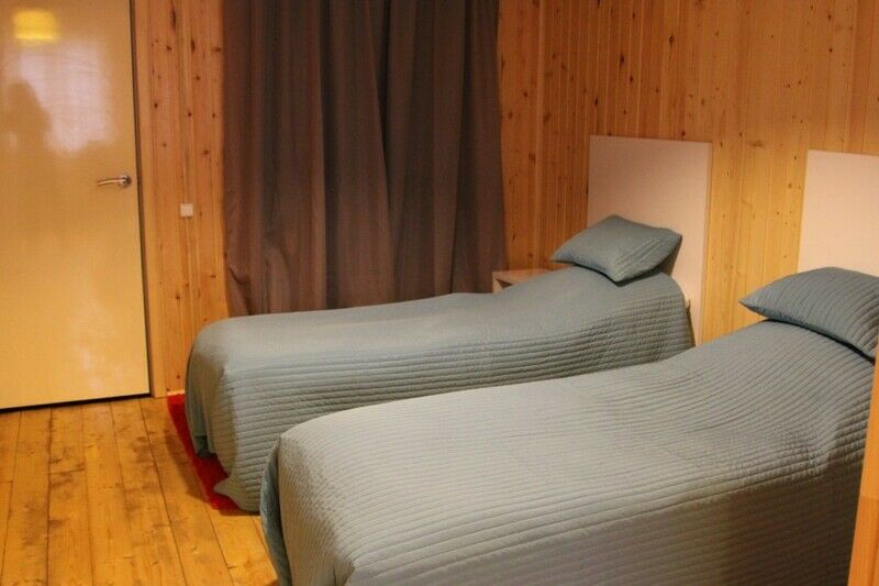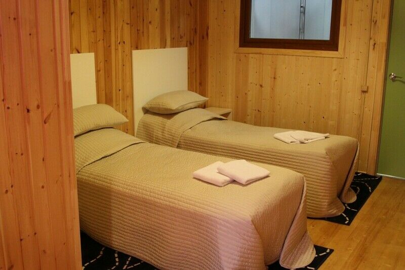 Двухместный улучшенный домик с двумя односпальными кроватями.