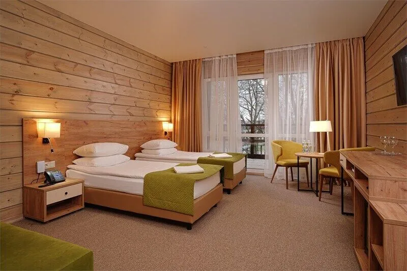 Путешествие с паройВсе хорошо!Отдыхали в номере стандарт в конгресс корпусе. Заселение не раньше 15:00. Выезд до 12:00. Но не обед после выселения сходить таки можно. Сам номер очень понравился. Чисто, просторно и есть балкон. Территория достаточно большая, ухоженная и отлично подойдёт для прогулок и катания на лыжах зимой. Есть зоопарк с козами , оленями, красивыми павлинами и тд. Есть пару водоемов для купания. ( Бассейны тоже присутствуют). По питанию без претензий. Не обед и ужин наливают алкоголь. ( Пиво,вино, шампанское э, водка и коньяк). Платными услугами не пользовались,но из там очень много ( спа, несколько кафе, прокат инвентаря и тд)