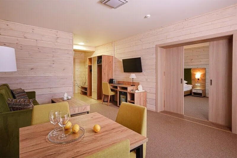 Номер Джуниор сюит с сауной - уютный номер с собственной сауной и банными принадлежностями. Сауна входит в стоимость проживания. Попробуйте отдых, который оздоравливает!