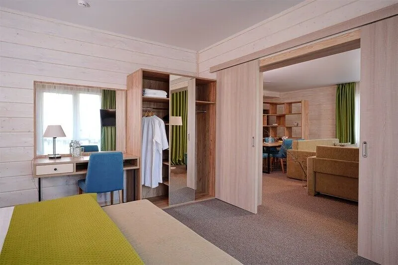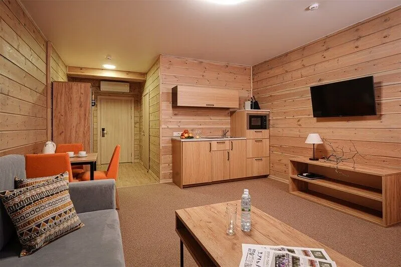 Номер Джуниор сюит с кухней — просторный двухкомнатный номер в современном стиле, идеально подходит для семейного отдыха с детьми или компании друзей.