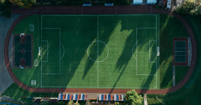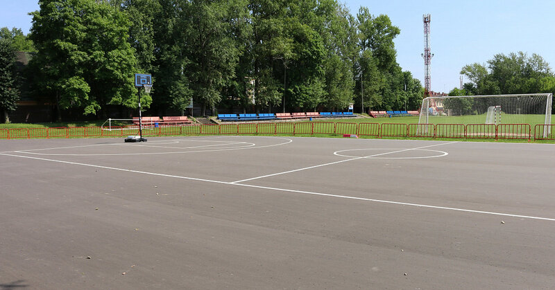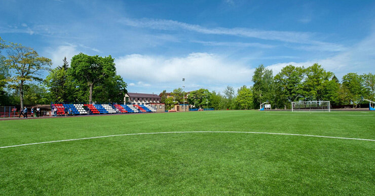 - футбольное поле (100 х 65 м), покрытие Optigrass 55 TR, класс 5/8, 3 беговых дорожки — 7000 ₽/час;