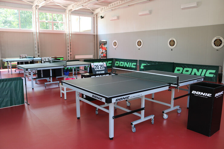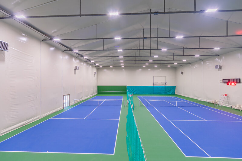 2. К вашим услугам открытый теннисный корт, готовый к эксплуатации. Вне зависимости от уровня подготовки, возраста и пола с профессиональными тренерами вы сможете освоить эту динамичную игру.     Теннисный центрОписание1. Крытый теннисный корт, оборудованный в зале, на котором можно играть круглый год, независимо от погодных условий. Площадка профессионально освещена и размечена четкими линиями согласно международным стандартам. С помощью систем вентиляции на корте поддерживается оптимальный микроклимат, это создает комфортные условия для игры в большой теннис в любое время года. - просторные раздевалки и душевые;