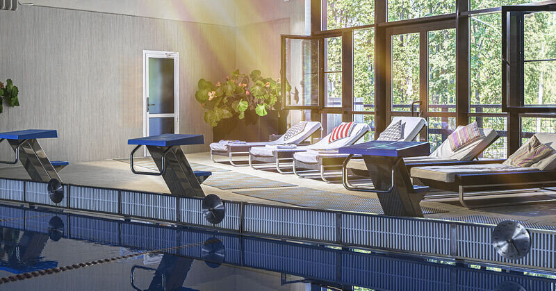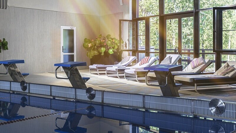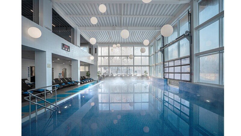 К услугам гостей 5 теплых бассейнов, включая открытые, формата инфинити с зоной для загара. В термальном комплексе предусмотрен акватонический бассейн, системой противотоков, каскадных и тропических душей, аэролежаками, душем впечатлений, а также хамамом, финской сауной, травяной комнатой и ледяным фонтаном. При каждом бассейне предусмотрены парные, а в термальном комплексе - prosecco bar. В теплое время года работает аэросолярий на панорамной террасе. Для любителей SPA на Курорте представлены три банных комплекса с купелями и сеновалом, а также разработаны специальные уходы by Elemis и программы оздоровления.