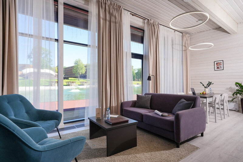 Курорт оснащён 371 номером различной категории и 52 коттеджами в окружении лесного массива, на берегу реки и собственного озера.