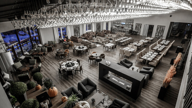 Корпоративы и праздникиБанкетный зал «Ozero»Читать полностьюБанкетный зал Ozero с панорамным остеклением идеально подойдёт для проведения банкетов с особым статусом на 300 человек, а терраса на 120 м² с завораживающим видом на озеро и закаты может быть сервирована под фуршеты или Гала-ужины под звёздным небом. В банкетном зале предусмотрена сцена, отдельная уборная, а также кухня. Для закрытых тематических мероприятий, зал располагает подогреваемым бассейном с саунами. Общая площадь 380 м².   Банкетный зал «Ozero»ОписаниеБанкетный зал Ozero с панорамным остеклением идеально подойдёт для проведения банкетов с особым статусом на 300 человек, а терраса на 120 м² с завораживающим видом на озеро и закаты может быть сервирована под фуршеты или Гала-ужины под звёздным небом. В банкетном зале предусмотрена сцена, отдельная уборная, а также кухня. Для закрытых тематических мероприятий, зал располагает подогреваемым бассейном с саунами. Общая площадь 380 м². «Панорамный лаунж»Многофункциональная банкетная площадка располагается на 5 этаже, с которого открываются захватывающие панорамы на лесной массив и яркие закаты на берегу озера, а также музыкальные салюты, которые мы организуем для Вас по предварительному запросу Общая площадь зала 580 м².   «Панорамный лаунж»ОписаниеМногофункциональная банкетная площадка располагается на 5 этаже, с которого открываются захватывающие панорамы на лесной массив и яркие закаты на берегу озера, а также музыкальные салюты, которые мы организуем для Вас по предварительному запросу Общая площадь зала 580 м². Банкетный зал «Шаляпин»Для мероприятий до 1200 человек на Курорте предусмотрен многофункциональный банкетный зал общей площадью 1400 кв.м. Для фуршетов в непосредственной близости располагается площадь с поющим фонтаном, музыкальной каруселью и LED экраном.   Банкетный зал «Шаляпин»ОписаниеДля мероприятий до 1200 человек на Курорте предусмотрен многофункциональный банкетный зал общей площадью 1400 кв.м. Для фуршетов в непосредственной близости располагается площадь с поющим фонтаном, музыкальной каруселью и LED экраном. Банкетный зал «Arena»Читать полностьюНаходится на 1 этаже Спа Отеля. Современный банкетный зал с панорамными окнами и возможностью проведения банкетов до 500 человек. Элегантный и сдержанный интерьер создаст приятную атмосферу для любого мероприятия или торжества. В зале предусмотрена сцена с профессиональным оборудованием, а также welcome-зона с барной стойкой для приветственного фуршета и танцев. Общая площадь зала 800 м².   Банкетный зал «Arena»ОписаниеНаходится на 1 этаже Спа Отеля. Современный банкетный зал с панорамными окнами и возможностью проведения банкетов до 500 человек. Элегантный и сдержанный интерьер создаст приятную атмосферу для любого мероприятия или торжества. В зале предусмотрена сцена с профессиональным оборудованием, а также welcome-зона с барной стойкой для приветственного фуршета и танцев. Общая площадь зала 800 м².