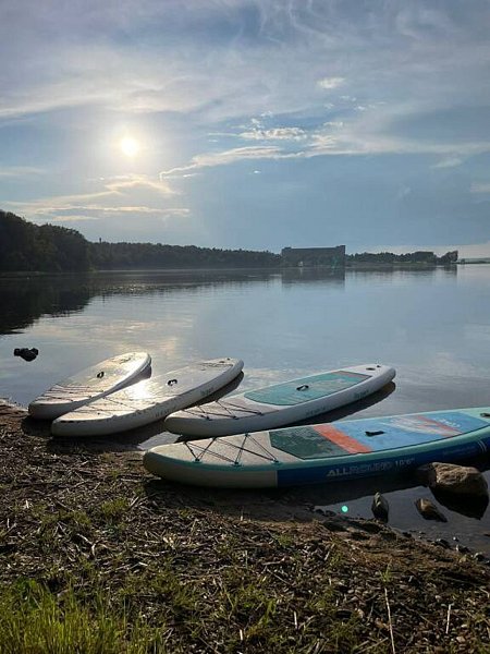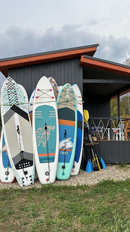 Посетители глэмпинга «Ruza River Club» имеют уникальную возможность отправиться в увлекательное путешествие по Рузскому водохранилищу и реке Руза, арендовав сап-борд. Для удобства предусмотрены жилеты, аква-паки и гидромешки, чтобы ничто не отвлекало от наслаждения спокойствием водной глади и красотой окружающей природы.