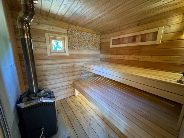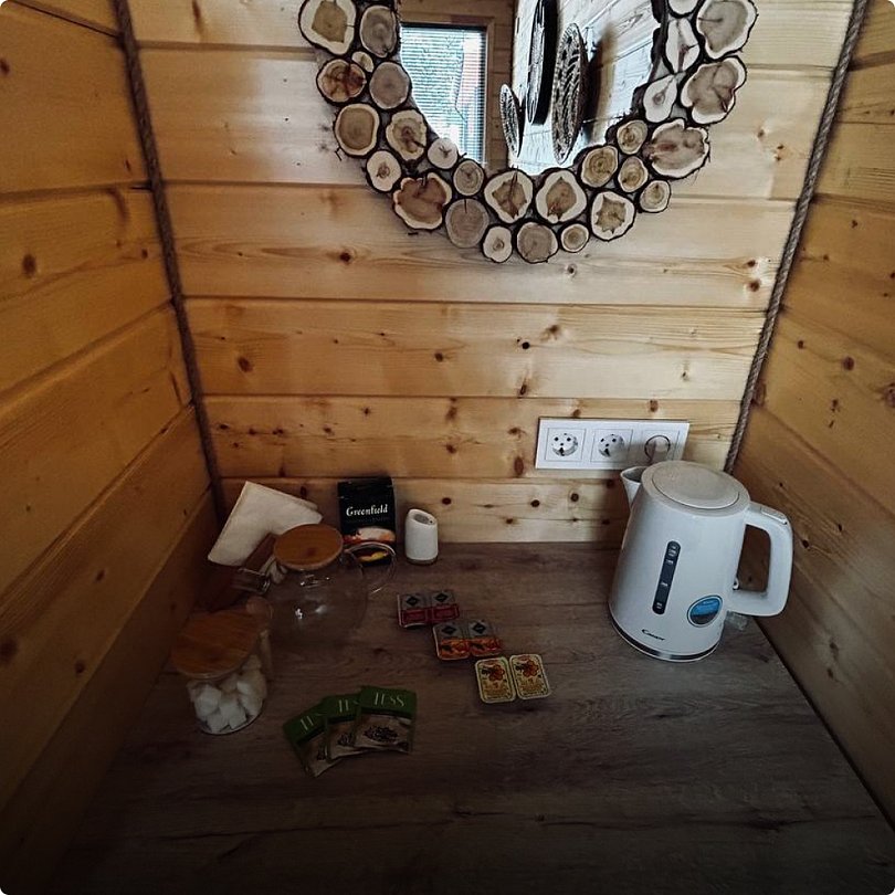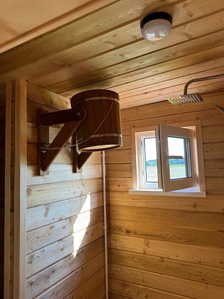На территории глэмпинга располагается уютная баня, которая станет настоящим оазисом расслабления. Банный чан на дровах предлагает вам насладиться горячей или холодной водой, а добавление еловых веток или лепестков роз создаст особую атмосферу и незабываемые ощущения.