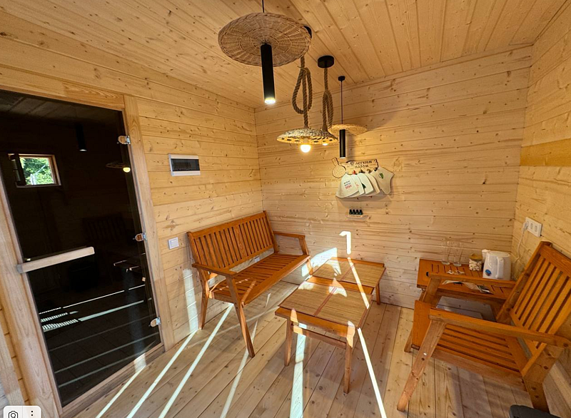 Инфраструктура: зона отдыха, шапочки, обливное ведро, дубовые веники, березовые веникиМинимальное время аренды: 2 часаНа живописной территории глэмпинга находится уютная баня, которая приглашает гостей насладиться атмосферой расслабления и уединения. Внутри — комната отдыха, парная и обливное ведро, превращающие каждое посещение в настоящий ритуал обновления.