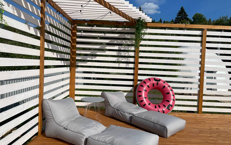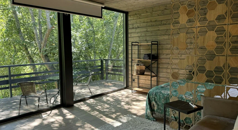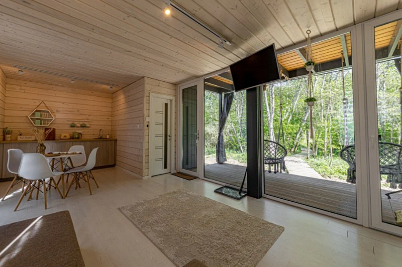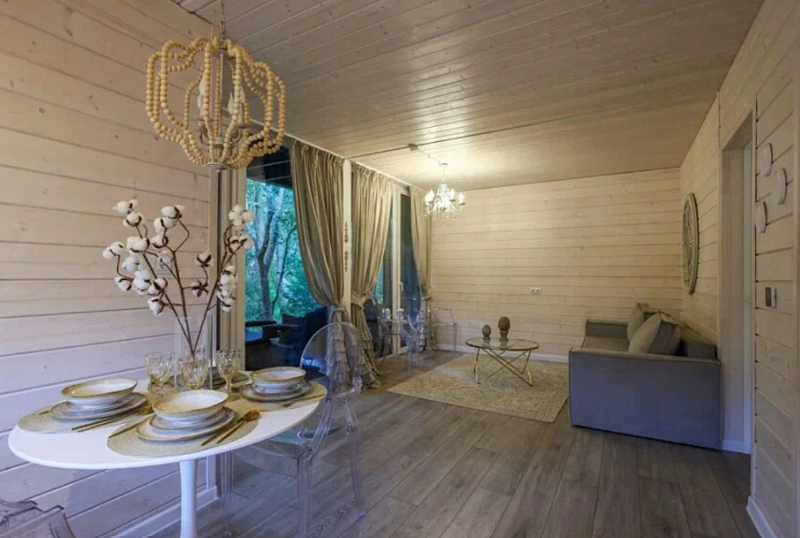 Двухэтажное бунгало с панорамным видом на лесную поляну и реку. Большая гостиная с проектором. Большая терраса с Фурако и свой собственный мангал. Функциональная кухня для удобства приготовления любимых блюд.