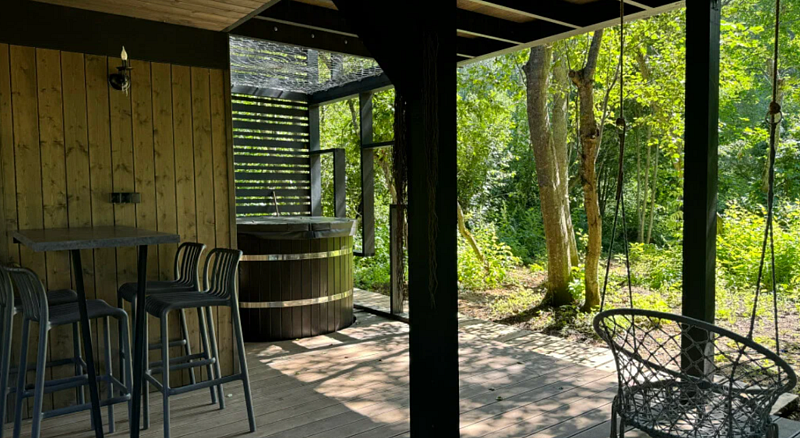 Двухэтажное бунгало, панорамный вид раскрывается на лесную поляну и реку. В доме есть уютный гамак и пространство для посиделок с компанией. Большая гостиная с проектором. Большая терраса с Фурако и свой собственный мангал. Функциональная кухня для удобства приготовления любимых блюд.
