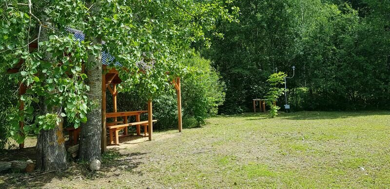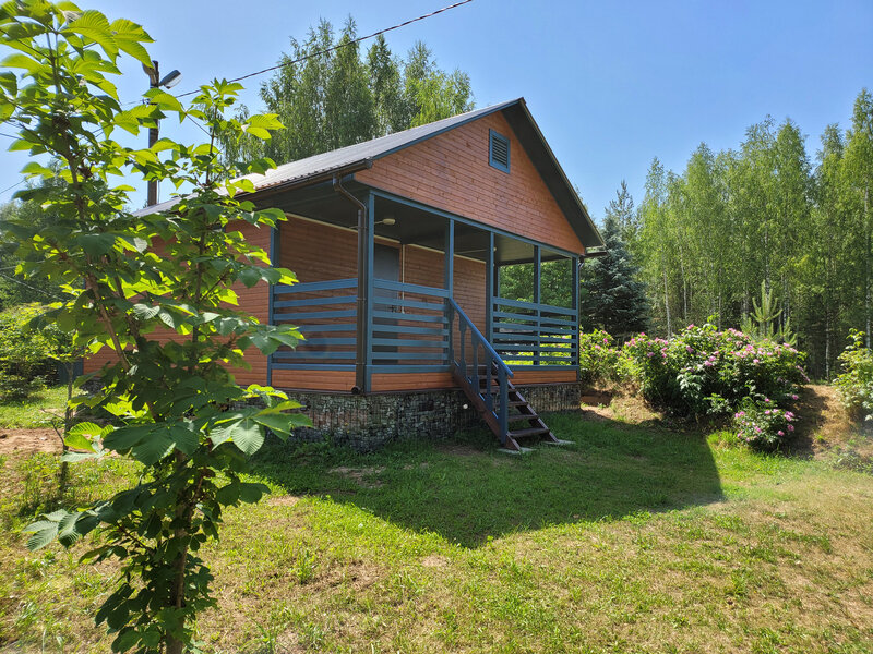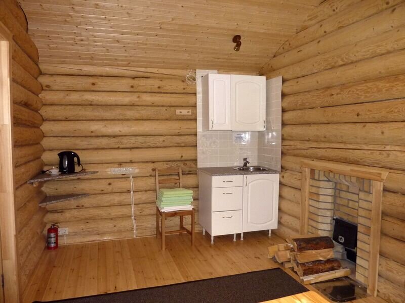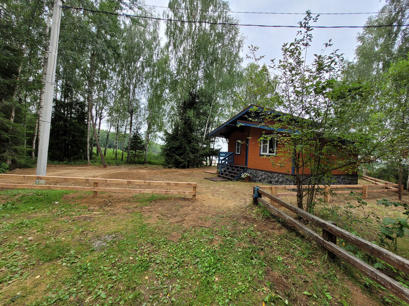 Индивидуально огороженная территория. В доме: гостиная-кухня, спальня, ванная, плита, холодильник, электрический чайник, микроволновка, тостер, набор посуды на 2 человека, постельное белье, полотенца. Во дворе: терраса, стол со скамейками, шезлонг, мангал, запас дров.
