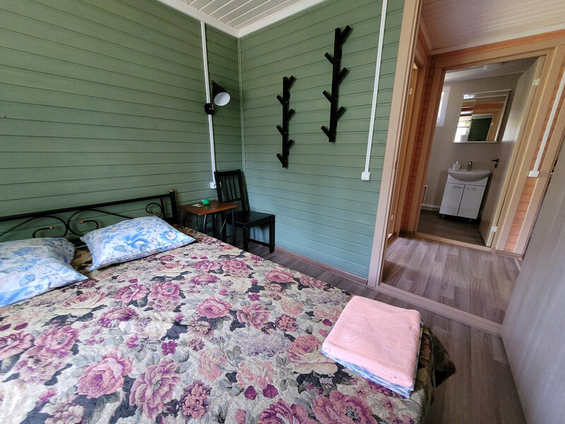 В номере: отдельный шкафчик в холле (для удочек, верхней одежды, сапог), душ, туалет, постельное белье, полотенца, тапочки.