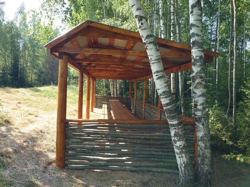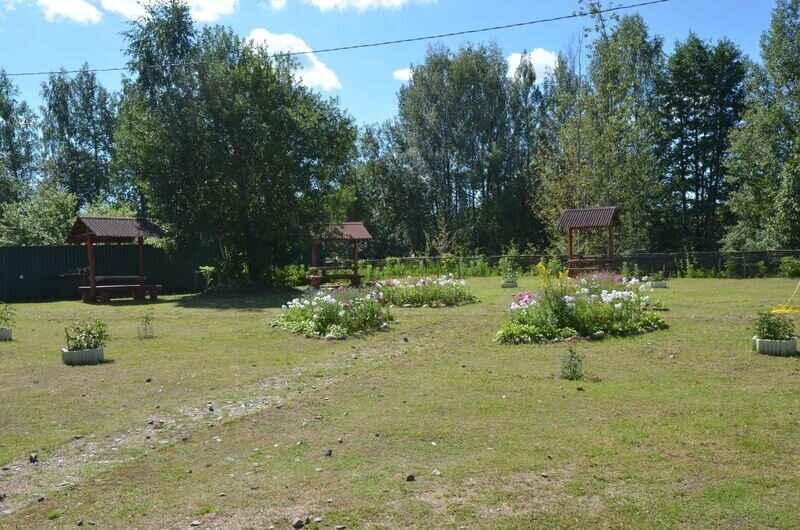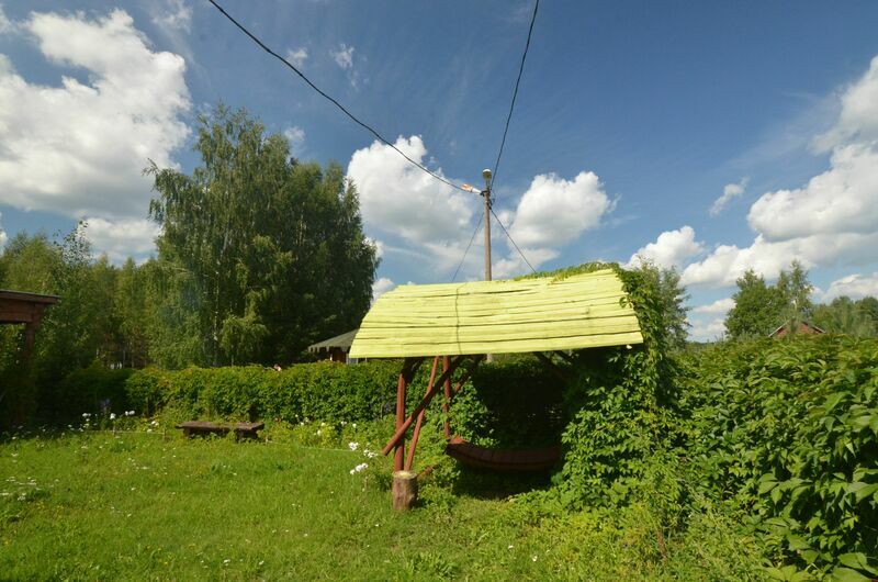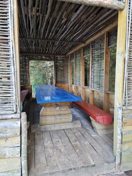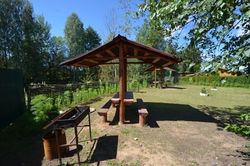 - большая терраса вокруг дома; на террасе под навесом стол с лавками;
