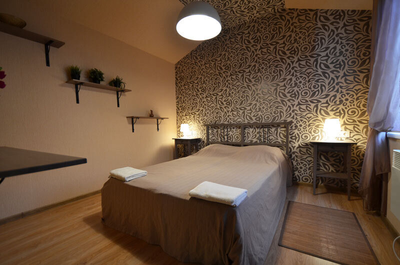- спальня с двуспальной кроватью, постельное белье, банные полотенца.