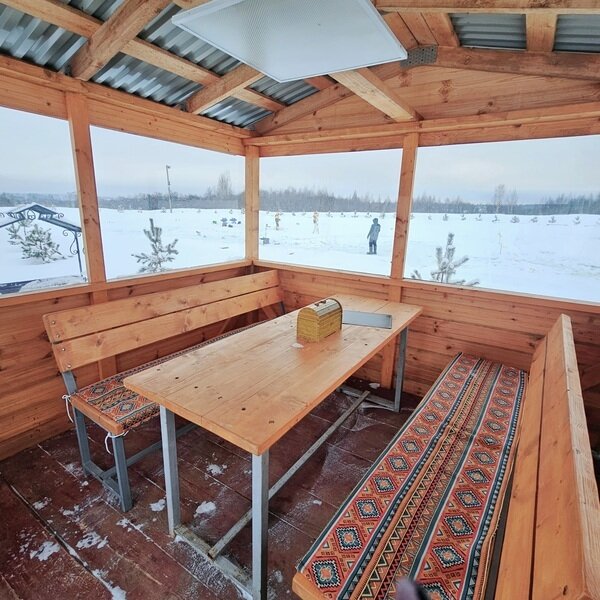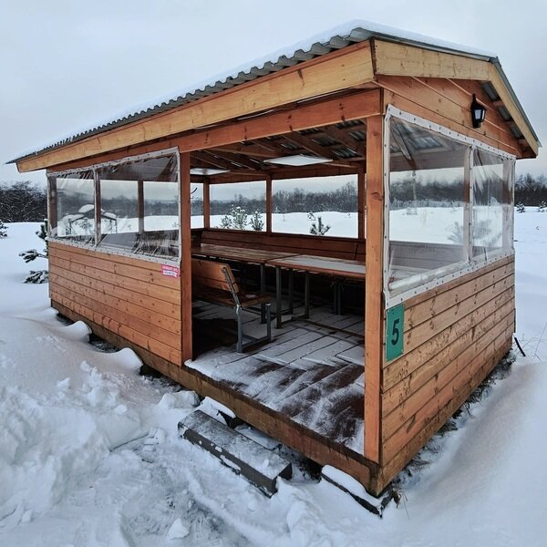 На водоёме 6 беседок standart на 4-6 человек каждая, а так же VIP беседка на 10-12 человек. Рядом с каждой беседкой установлен мангал.