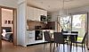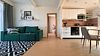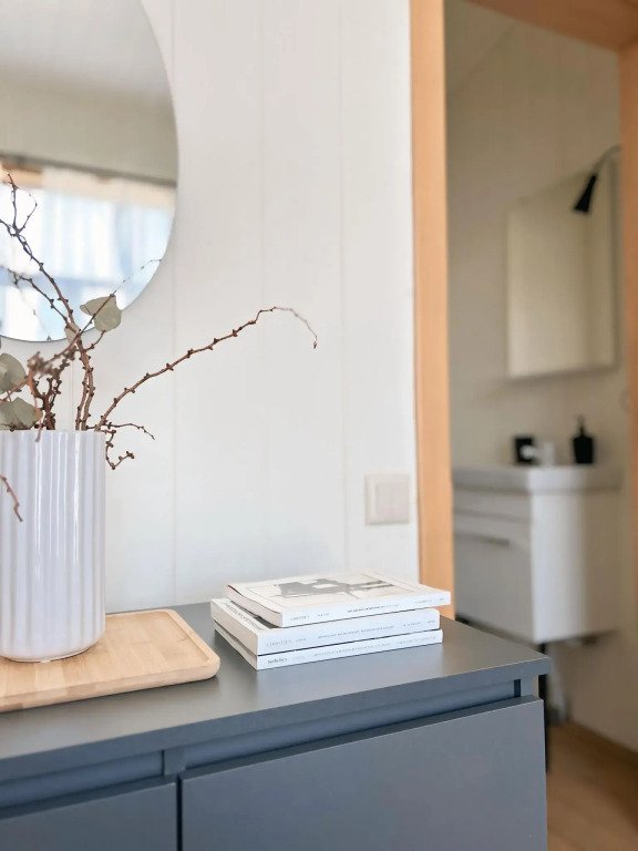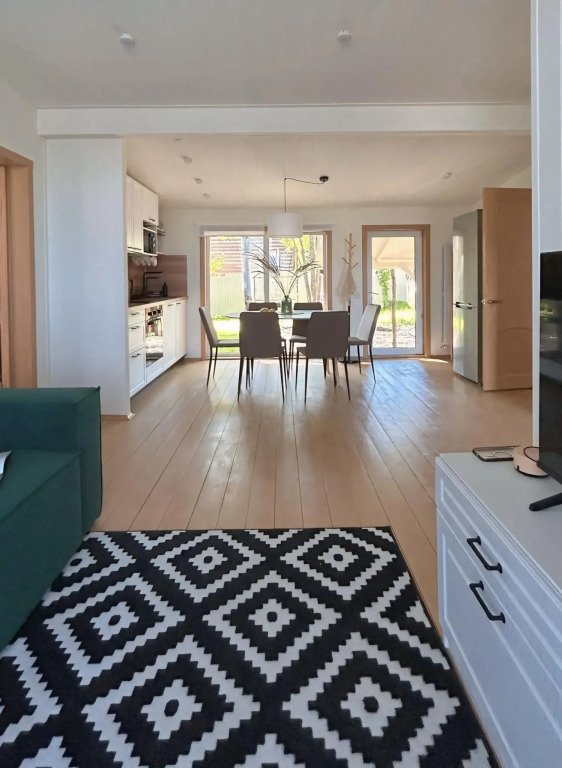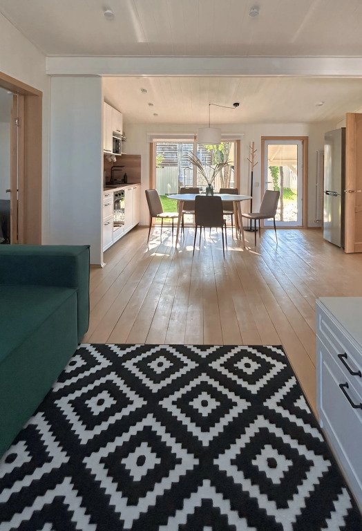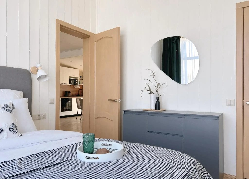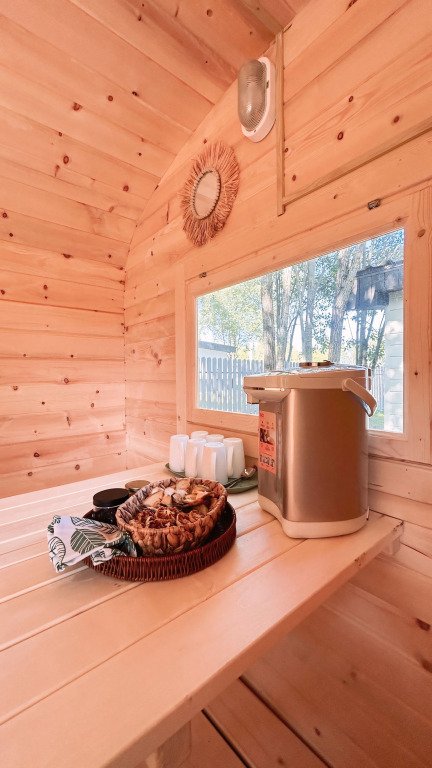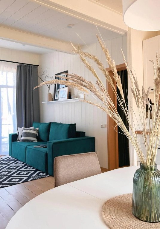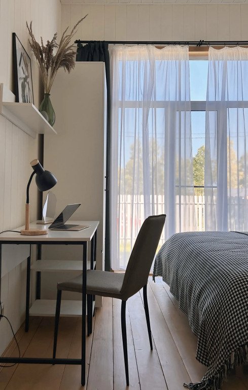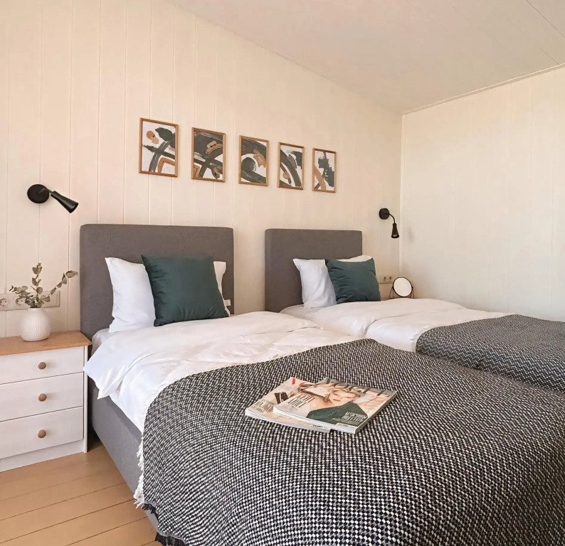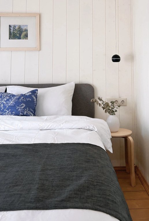 В доме несколько спален: в первой комнате, оборудованной собственным туалетом раковиной, расположена кровать размером 160x200 см, во второй комнате — кровать 160x200 см, в третьей — две кровати 90x200 см. В гостиной диван размером 160x200 см. Гости обеспечиваются постельным бельём, полотенцами, тапочками, феном, средствами гигиены и зубными наборами. Кухня укомплектована посудой, посудомоечной машиной, варочной панелью, холодильником, чайником, кофемашиной, а также шампурами, солью, сахаром, специями, чаем, маслом и крупами.