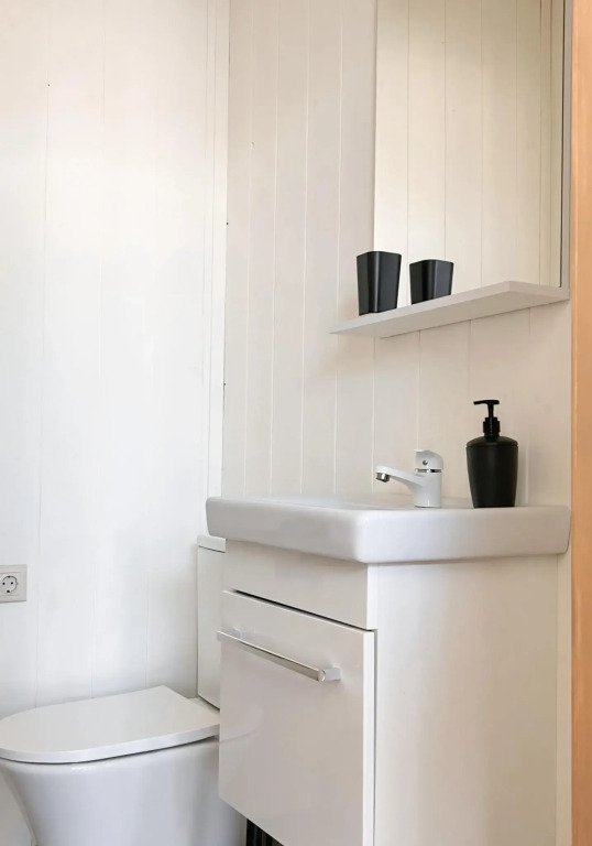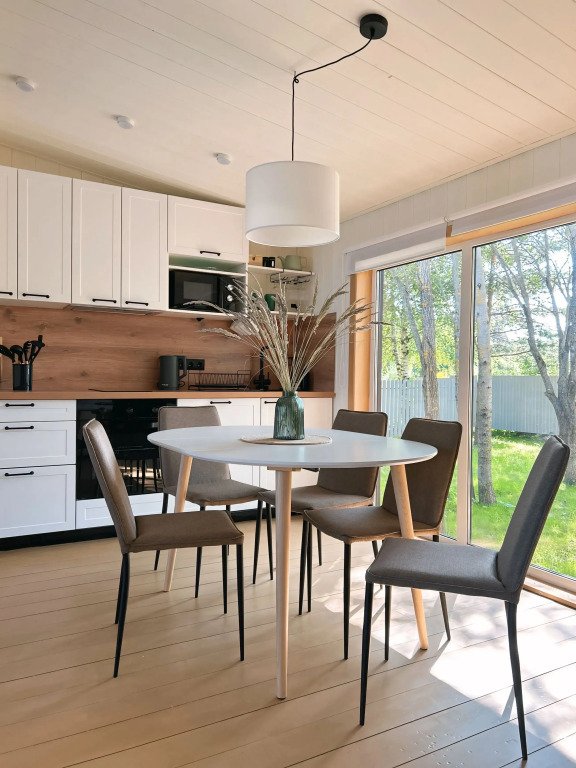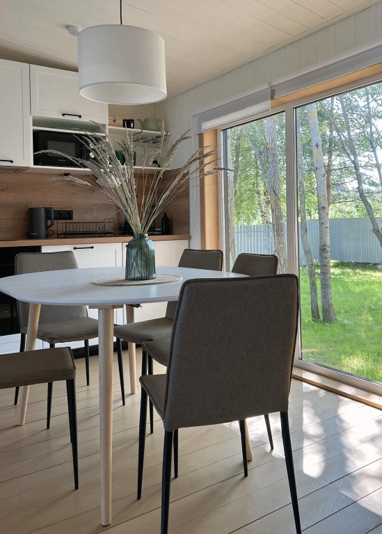 На территории дома имеется крытая веранда с панорамными окнами. Дом оснащён Wi-Fi, телевизором, системой очистки воды, стиральной машиной и кондиционером.