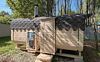 Территория огорожена забором, оборудована зоной барбекю и открытой верандой на 15 кв. м со столом, стульями на 6 человек и качелями. Есть баня.