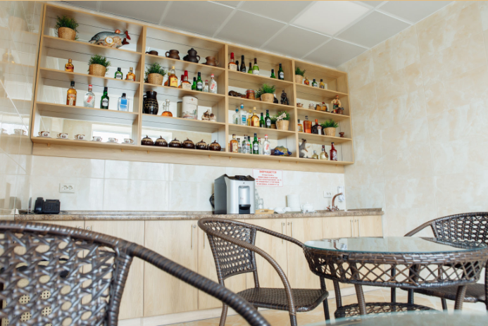 База отдыха предлагает своим гостям просторные номера, уютное лобби с баром, гастрономический ресторан, ухоженный парк на территории , банкетные залы, летние веранды, беседки для барбекю, банный комплекс, зону отдыха у фонтана. Дизайн отеля полностью, от архитектуры до мебели, отличается лаконичностью, обилием дневного света, благородной палитрой красок, отделкой из ценных пород дерева и натурального камня.