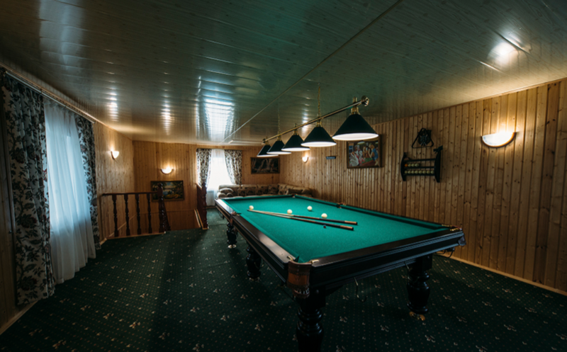 - комфортная зона отдыха с бильярдным столом, ТВ, интерьерной мебелью;