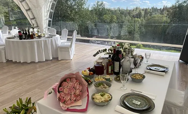 Площадка для свадьбы в Подмосковье в Sunrise Village расположена в живописном месте у воды — на берегу Клязьминского водохранилища.