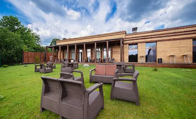 На территории есть мангальная зона, детский домик, детская площадка, баня, японская баня Фурако. Также для гостей предлагается аренда караоке или проведение своего мероприятия в шатре под открытым небом или в банкетном зале с великолепным видом на лес.