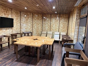 Площадь банного комплекса составляет 160 м. кв. В комплексе находится персональная раздевалка, душевая комната, парилка, комната для отдыха, массажная комната, туалет.