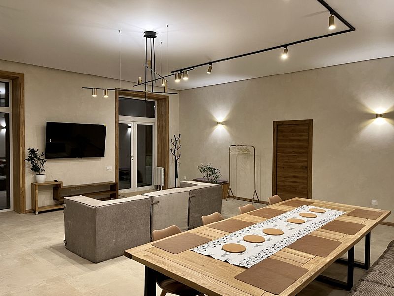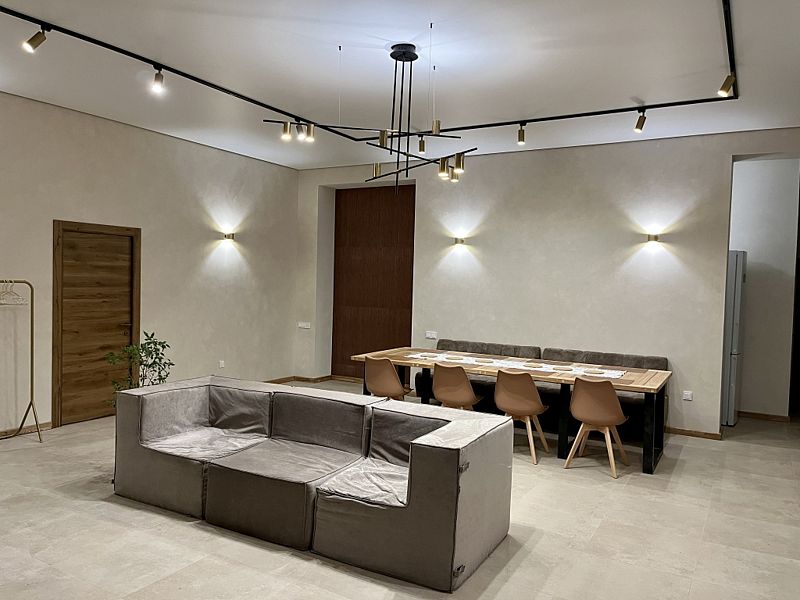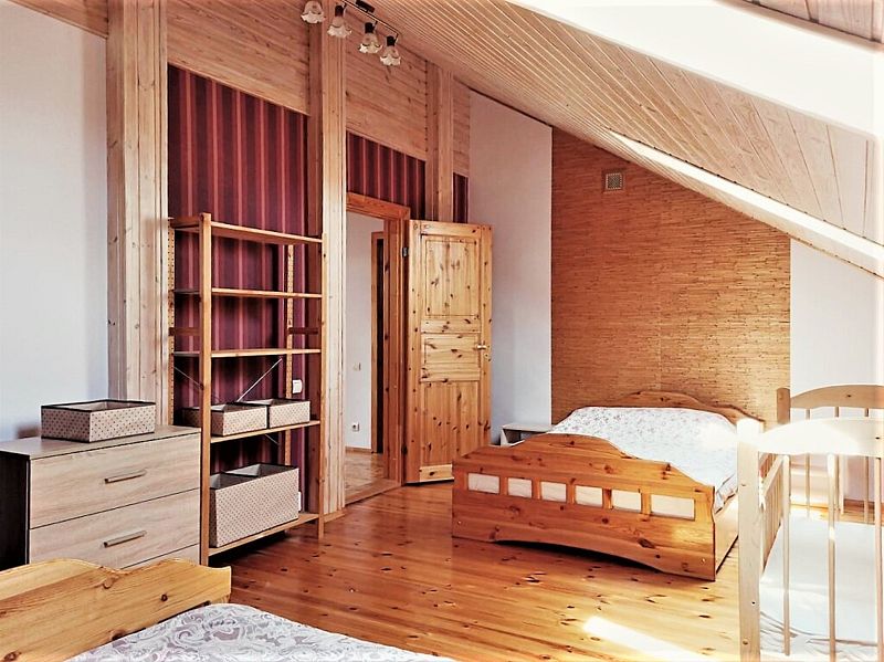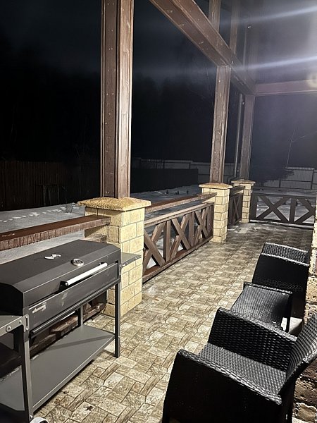 Скучно не будет, ведь в коттедже к услугам отдыхающих караоке, боулинг и площадка для барбекю. Для тех, кто не представляет отдых без водных удовольствий, есть крытый бассейн. В коттедже есть игровые детские комнаты. Будьте готовы к тому, что детям будет весело, а вам придется коротать вечер со взрослыми. Здесь рады животным. Допускается бесплатное размещение с питомцами.