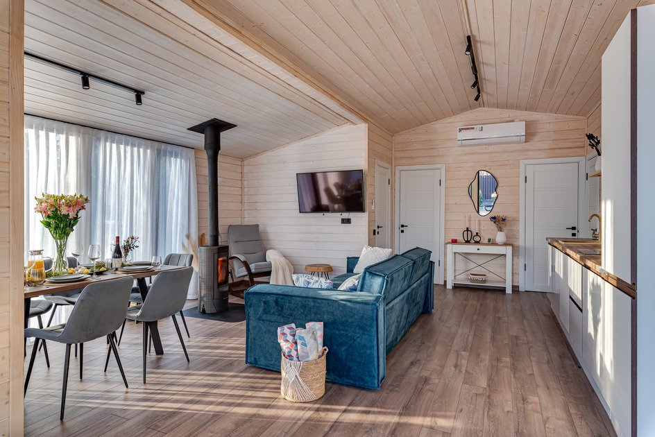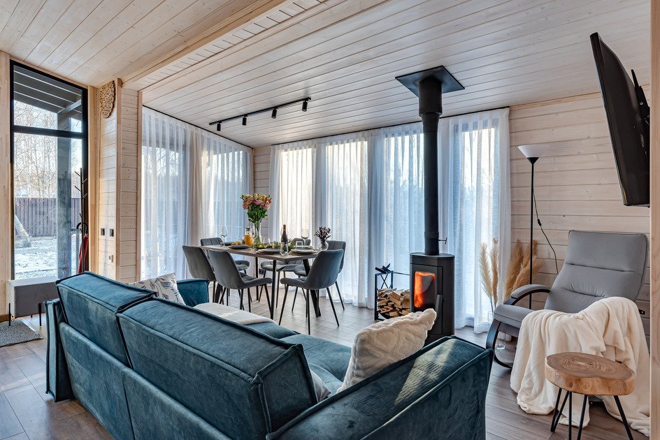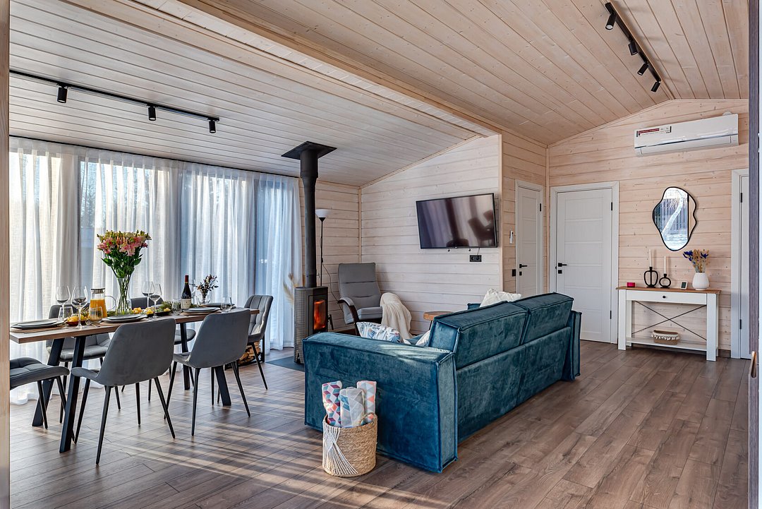 Дом «Шале с сауной и камином» — это идеальное место для тех, кто мечтает о комфорте и уюте вдали от городской суеты. Шале наполнено светом, а стильный интерьер создает атмосферу тепла и уюта. В доме две спальни с двуспальными кроватями и отдельная комната с раскладным диваном, что позволяет разместить до шести человек.