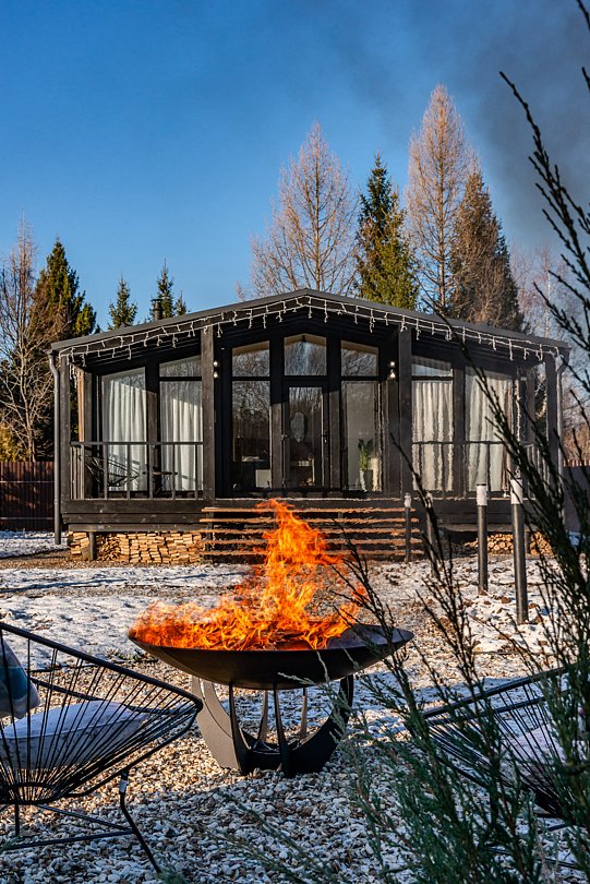 Для любителей отдыха на природе предусмотрена терраса идеально подходит для утренних трапез или наслаждения солнечными ваннами, а также зона для барбекю и кострища, где можно приготовить вкусные блюда на свежем воздухе. Вечером можно уютно устроиться в креслах у огня и любоваться звездным небом.
