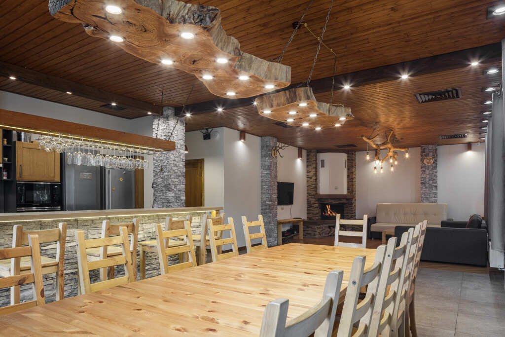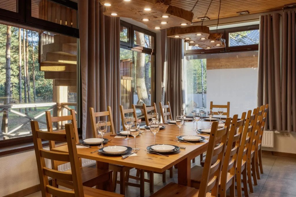 караоке, музыкальный центр, Wi-Fi, холодильник, фен, система безопасности, кофемашина, микроволновая печь, утюг, ванна или душевая кабина, санузел, теплый пол, банные полотенца, тапочки, сауна, балкон с красивым видом, терраса, кровать «King size», кровать «Queen size», односпальная кровать, гладильная доска, ортопедический матрас, детская кровать, тумбы, шкаф для одежды, обеденный стол, барная стойка, камин, посудомоечная машина, чайник, мягкая мебель, питьевая вода, двухъярусные кровати, кухонная посуда, стиральная машина и сушилка, туалетные средства, мангал, принадлежности для барбекю, панорамные окна, москитная сетка, мансардные окна, телевизор со Smart TV, номер для некурящих, вид на лес, духовой шкаф, морозильная камераВ коттедже