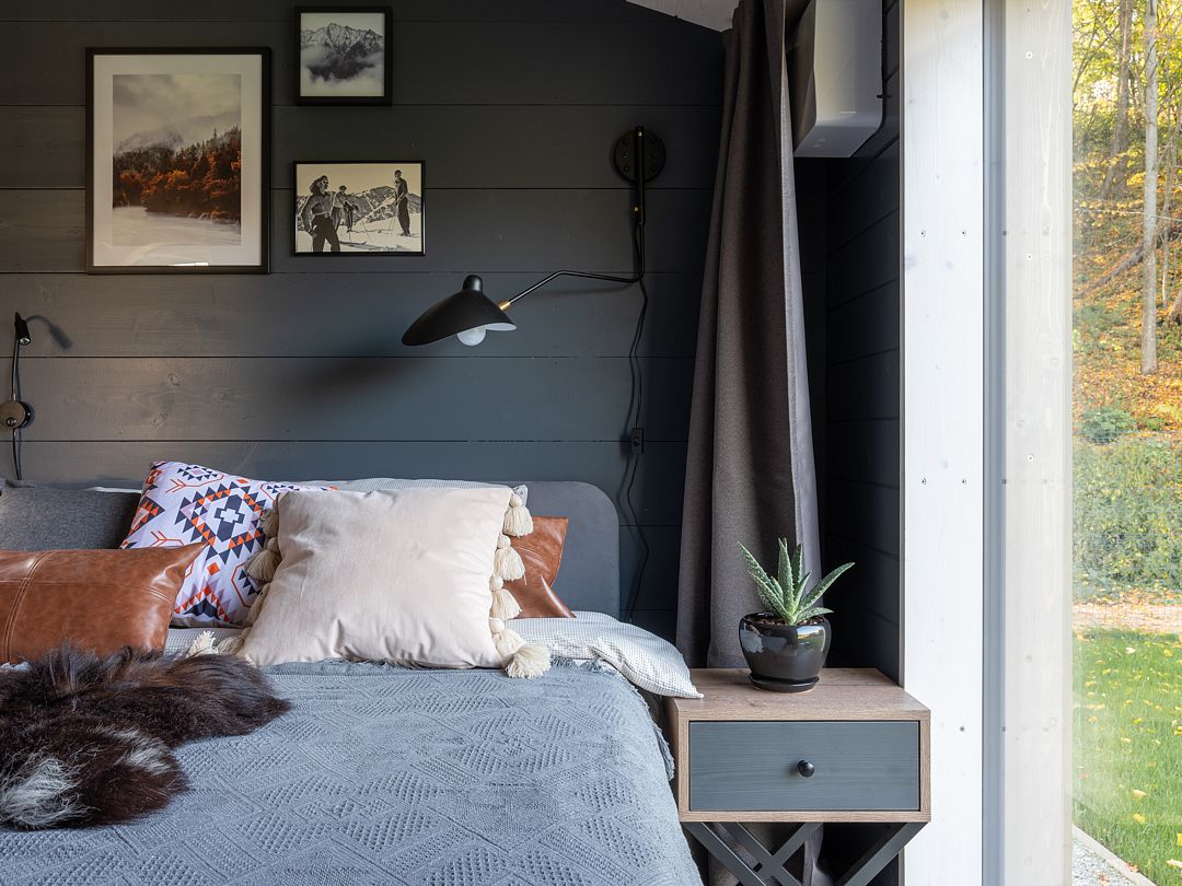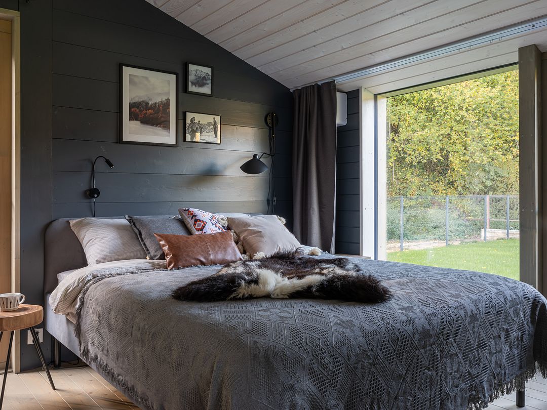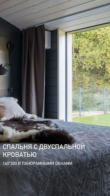 2. Спальня с двуспальной кроватью 160х200 с матрасом средней жёсткости и шторами блэкаут