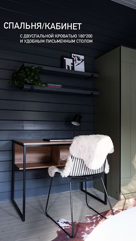 1. Спальня/кабинет с двуспальной кроватью 180х200 с матрасом средней жёсткости