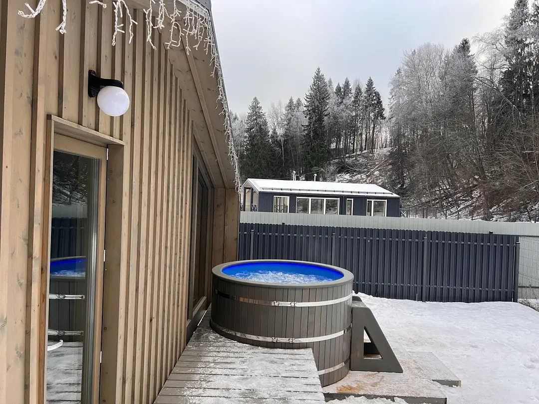 Уютная подогреваемая купель, способная вместить до четырех человек, идеально подходит для расслабления и приятного времяпровождения с друзьями, превращая отдых в настоящее удовольствие. Купель готовится и сдается по предварительному запросу.