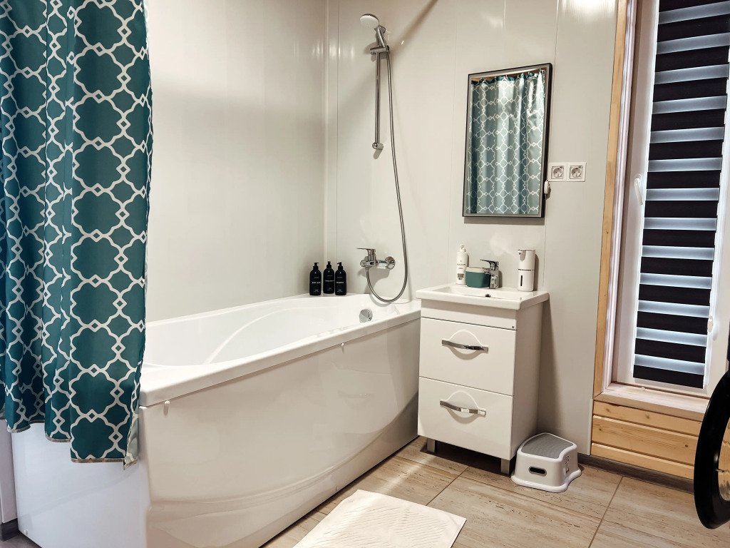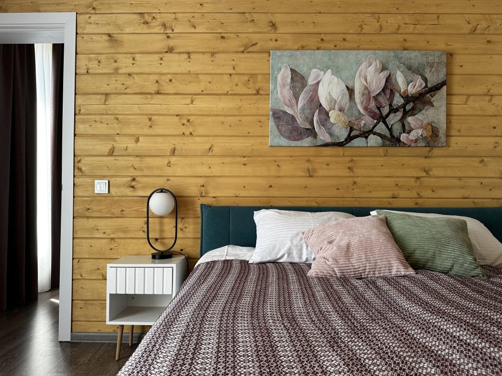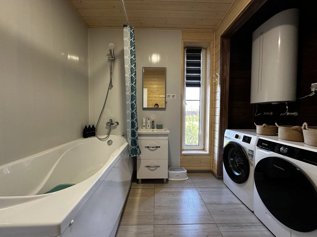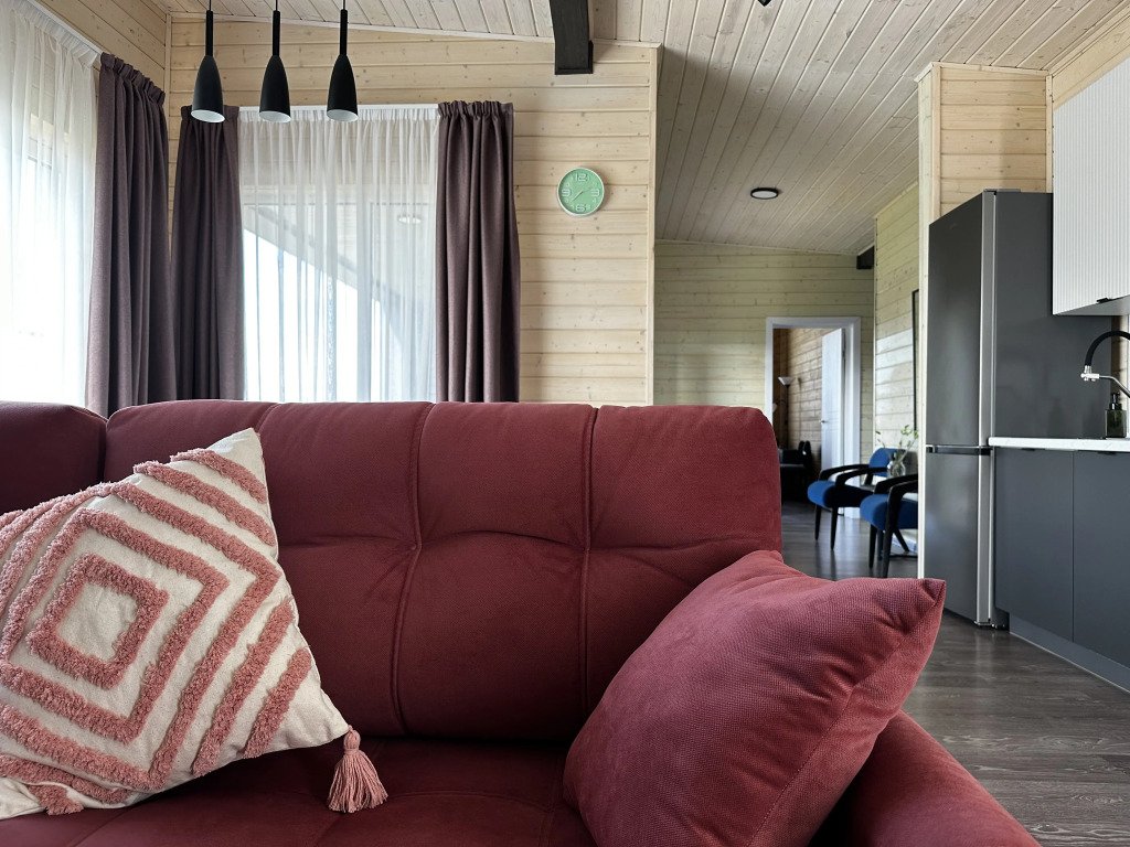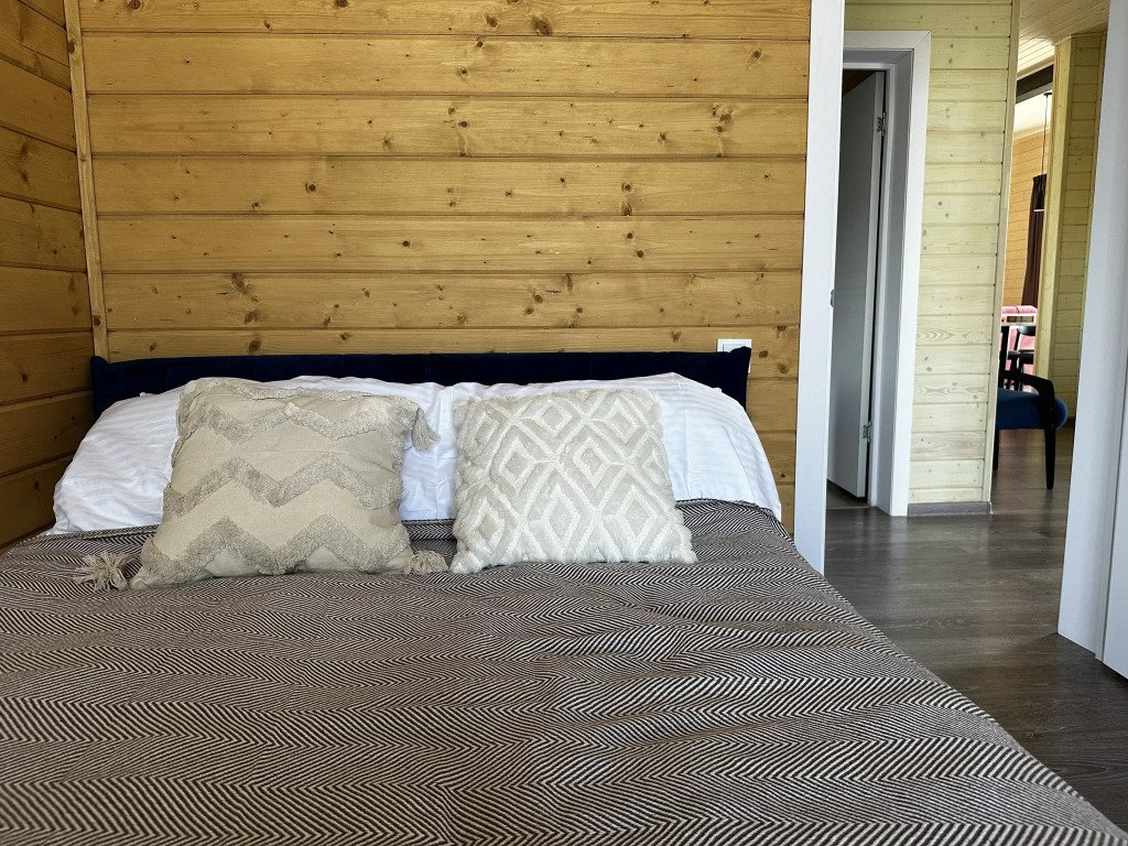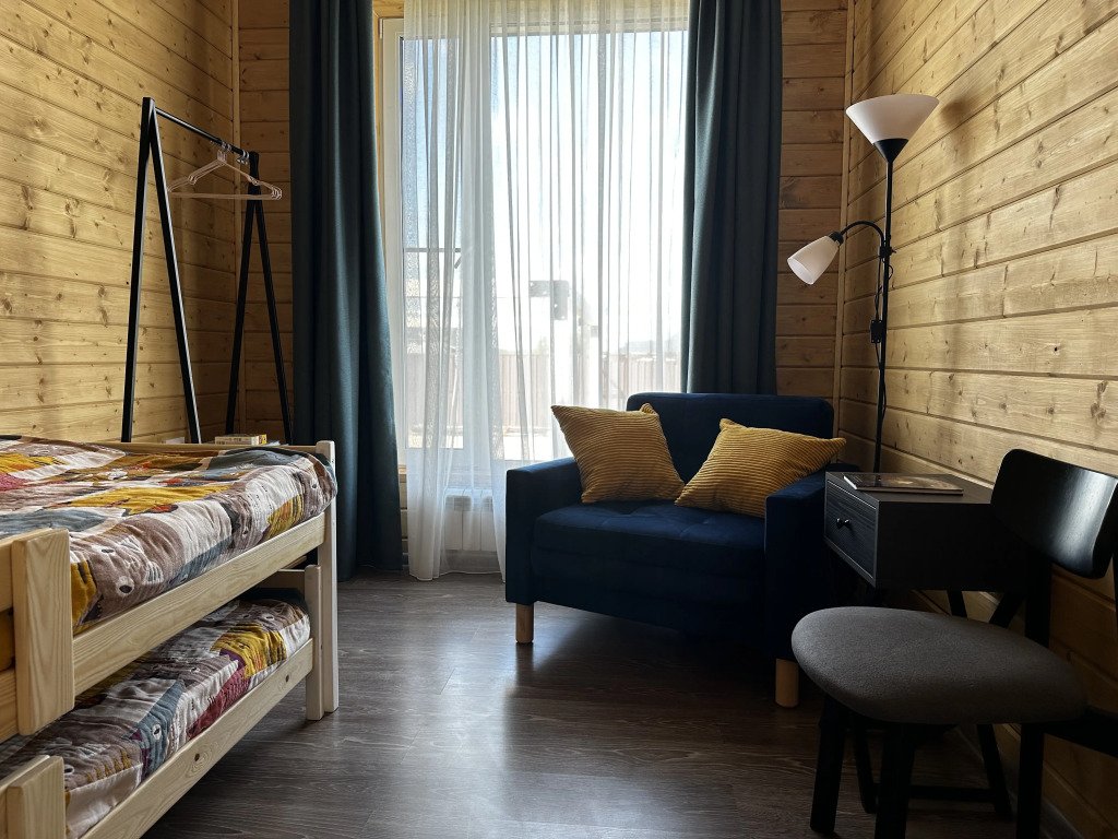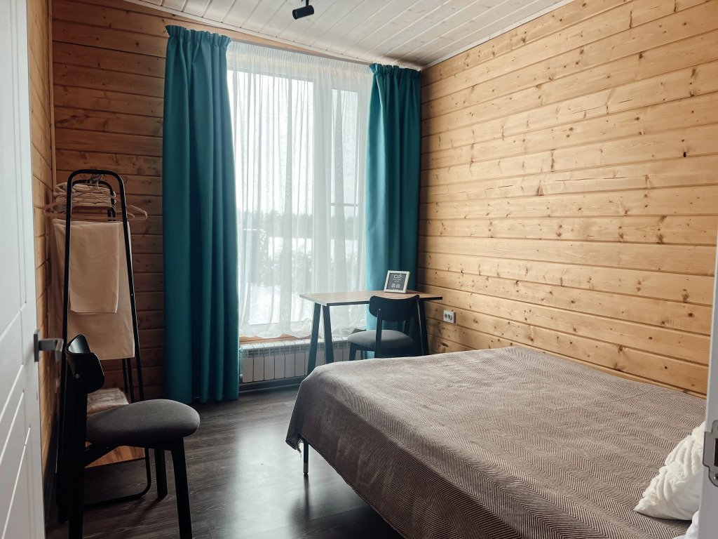 Дом оборудован для проживания до 9 гостей. К услугам гостей 2 двуспальные кровати 160х200 см, 1 раскладной диван 150х200 см, 1 раскладное кресло 80х200 см и 2 односпальные кровати 80х200 см.