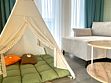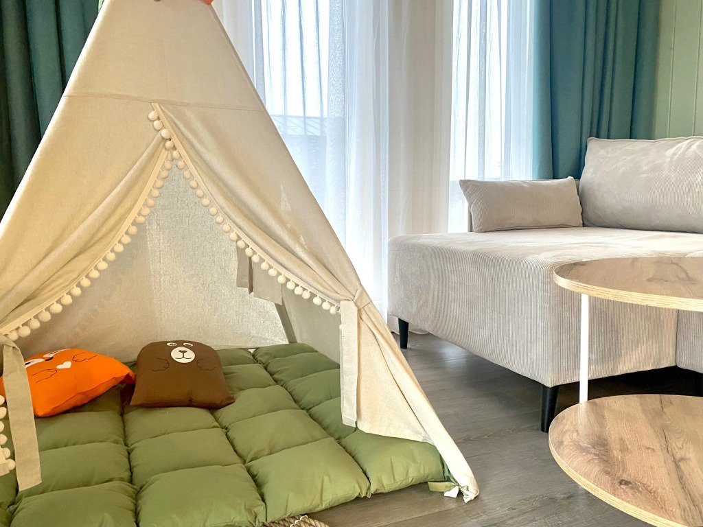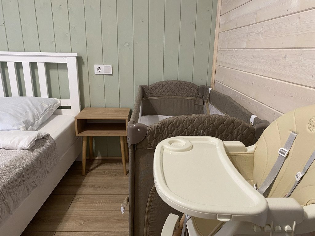 Для маленьких гостей имеется детская кроватка, стульчик, защита розеток и детская посуда.