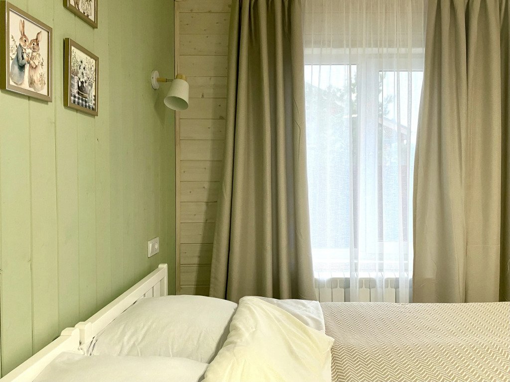 Коттедж оборудован для проживания до 6 гостей. К услугам гостей 2 изолированные спальни и гостиная.