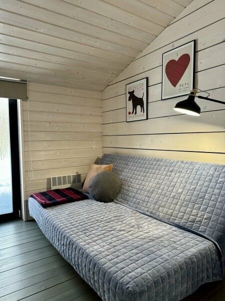 Спальные места: двуспальная кровать, раздвижная полутораспальная кровать (в разложенном состоянии двуспальное место), раскладной диван. Три отдельные комнаты и гостиная. Дом рассчитан на 6 гостей.