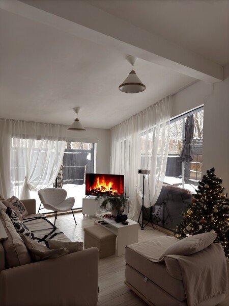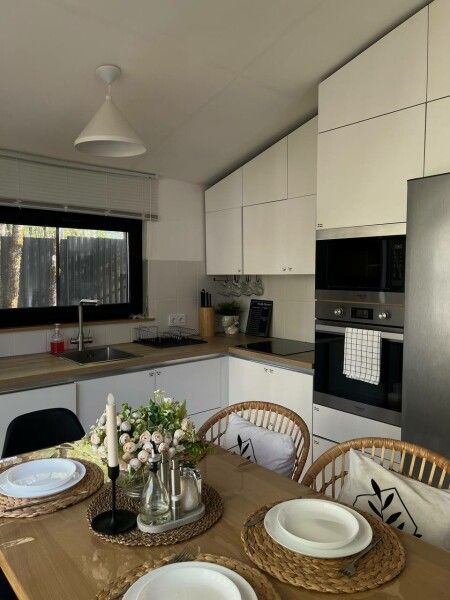 Здесь вас ждет все необходимое для комфортного проживания, включая две спальни с удобными двуспальными кроватями и раскладной диван для дополнительных гостей в гостиной. Для вашего развлечения предусмотрены телевизор, проектор и настольные игры, так что скучать не придется.