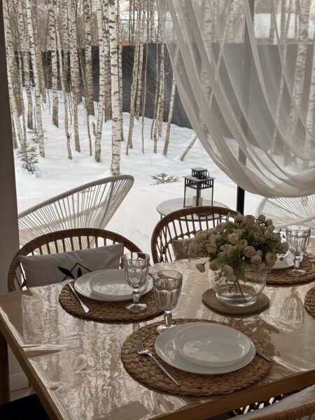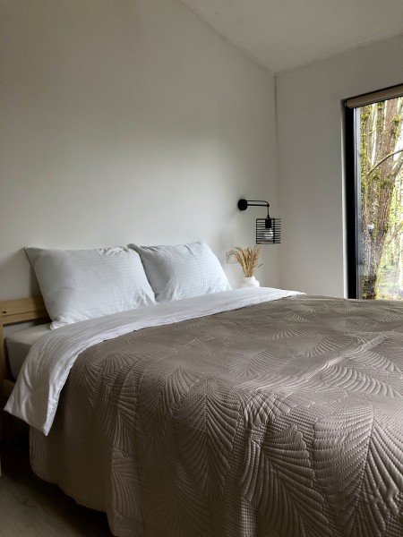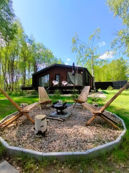 Можно сидеть на веранде и наслаждаться природой и пением птиц. В доме есть всё для комфортного пребывания. Две спальни с 2-спальными кроватями, в гостиной раскладной диван на 2-х человек. Есть ТВ, проектор, настольные игры.