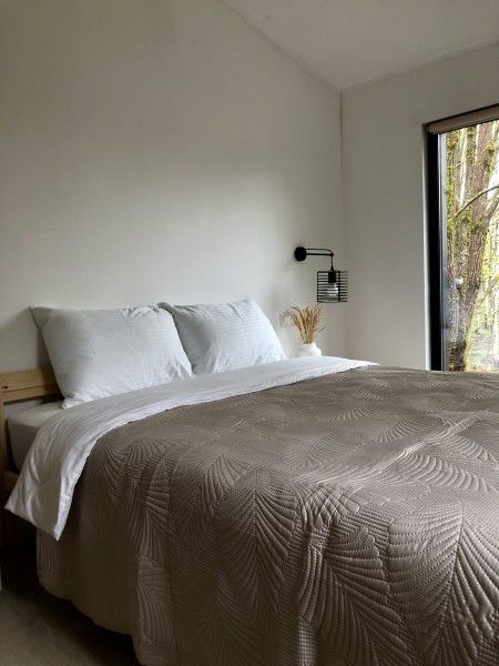 В доме есть всё для комфортного пребывания. Две спальни с 2-спальными кроватями, в гостиной раскладной диван на 2-х человек. Есть ТВ, проектор, настольные игры.