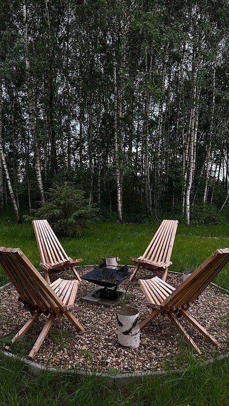 На территории глэмпинга расположено костровое место с уличной мебелью, а просторная беседка с мангальной зоной создает идеальные условия для барбекю и приятных встреч с близкими. Здесь вы сможете готовить изысканные блюда на гриле, наслаждаясь окружающей природа и беседой с близкими — что может быть лучше?